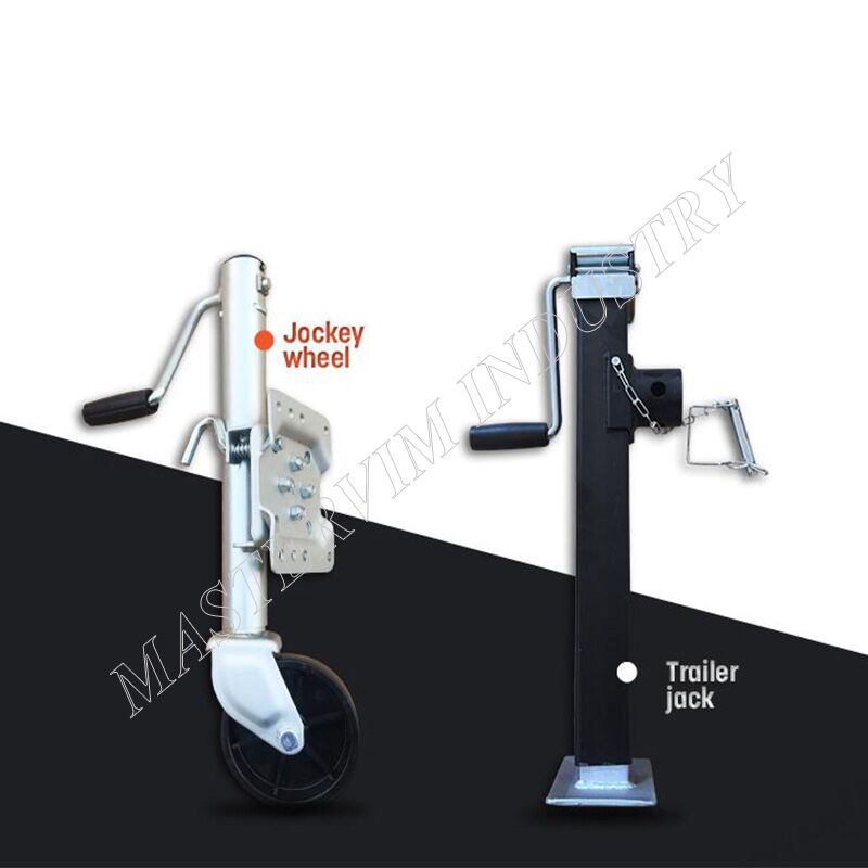 The trailer jockey wheel and trailer jack are used to stand part of the trailer weight when parking.